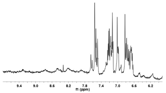 1D-1H NMR spectrum of GmMBD10c. The broad peaks in the amide region from 6.6 to 7.8 ppm show that GmMBD10c is a partially disordered protein.