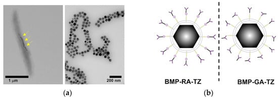 | Au | Chemical synthesis | Rod | 50 × 8 nm | Crosslinking with 2-iminothiolane hydrochloride and sulfo-EMCS | [42] |