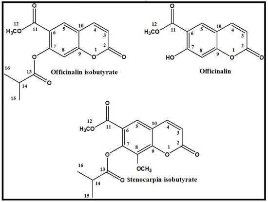 - Widelski, J.; Luca, S.V.; Skiba, A.; Chinou, I.; Marcourt, L.; Wolfender, J.L.; Skalicka-Woźniak, K. Isolation, and antimicrobial activity o coumarin derivatives from fruits of Peucedanum luxurians Tamamsch. Molecules 2018, 23, 1222. [Google Scholar] [CrossRef]