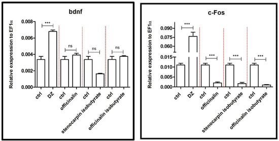 2.2. Influence of Isolated Coumarins on the Expression of Genes Associated with the Etiology and Extinction of Anxiety