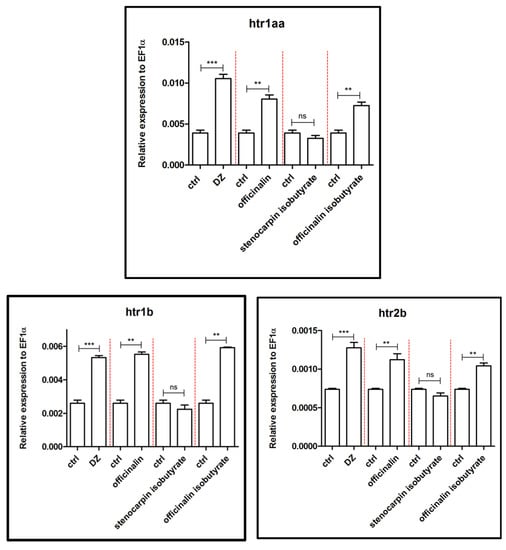 Chicago/Turabian StyleWidelski, Jarosław, Natalia Kasica, Monika Maciąg, Simon Vlad Luca, Barbara Budzyńska, Dafina Fondai, Piotr Podlasz, and Krystyna Skalicka-Woźniak. 2023. "Simple Coumarins from Peucedanum luxurians Fruits: Evaluation of Anxiolytic Activity and Influence on Gene Expression Related to Anxiety in Zebrafish Model" International Journal of Molecular Sciences 24, no. 10: 8693. https://doi.org/10.3390/ijms24108693
