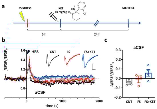 While we have previously described the effects of acute FS on excitatory transmission in L2/3 pyramidal neurons, showing an enhancement in glutamate release and excitatory spontaneous activity up to 24 h after stress that was reversed by acute ketamine [,], possible changes in long-term plasticity (LTP induction) were never explored before.