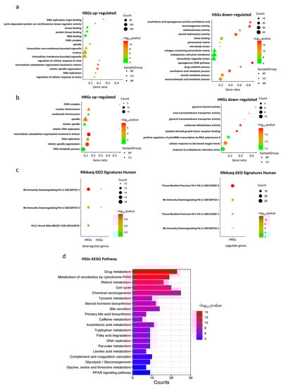 2.2. Gene Set Enrichment Analyses of HSGs and HRGs