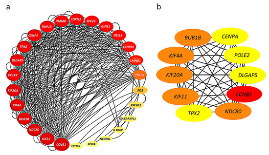2.4. Construction of Protein–Protein Interaction Network and Identification of Hub Genes