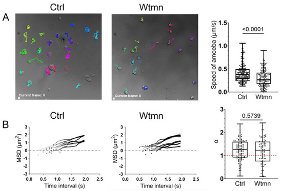 2.1. Kinetic Parameters of E. histolytica Motility in the Presence of Wortmannin