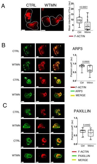 4.6. F-actin Levels and Colocalization with ARP3 or Paxillin