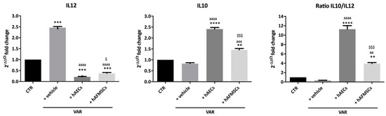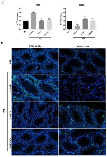 2.4. Inflammatory Asset in Testes of VAR Rats Treated without or with hAECs and hAFMSCs