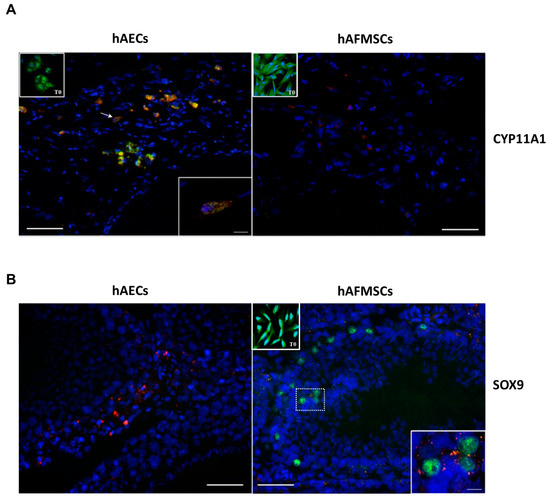 4.7.3. Detection of hAECs and hAFMSCs in the Engrafted Testes