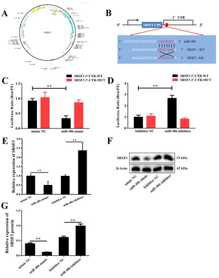 2.2. miR-486 Specifically Targeted SRSF3
