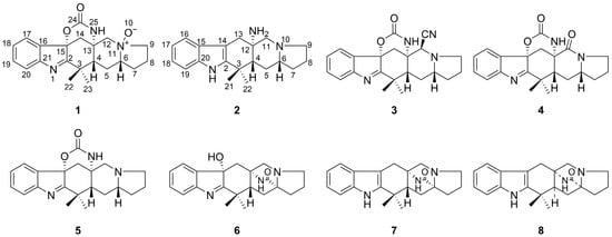 Structures of compounds 1–8.