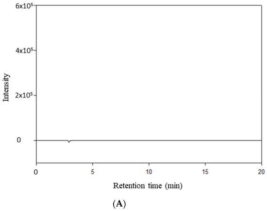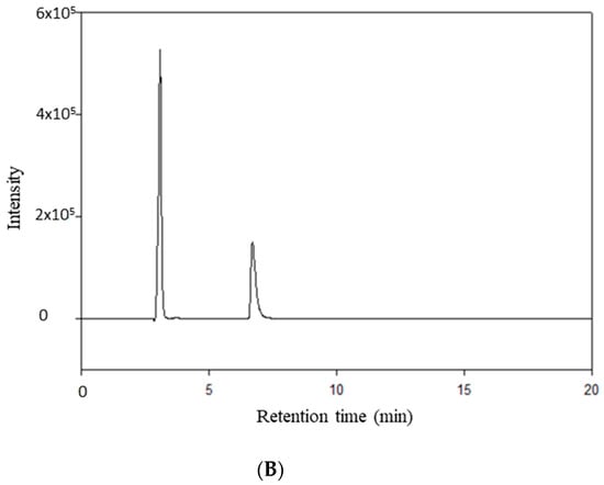 RocBr showed an average retention time of 7.02 ± 0.04 min (Figure 9B) when compared with acetonitrile (Figure 9A).
