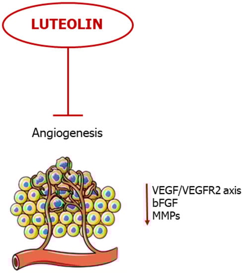 Taken together, these studies show promise for luteolin as a potent anti-angiogenic agent, evading tumor evolution and metastatic cascade (Figure 5).