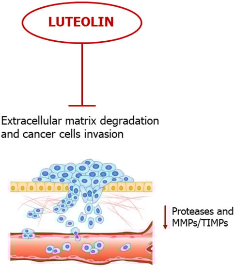 Luteolin slows down ECM lysis. Cancer cell invasion is inhibited by luteolin through suppression of proteases activity.