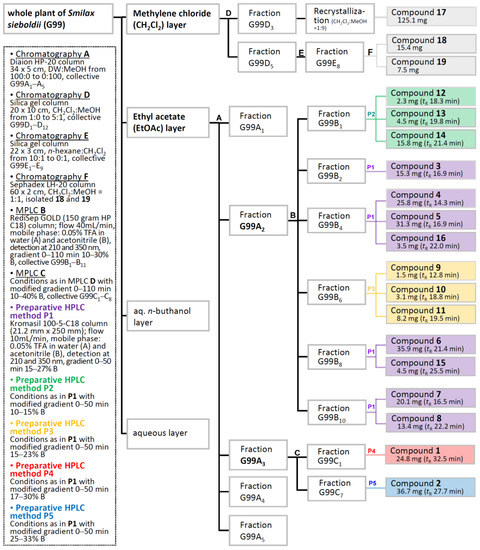 The isolation scheme of compounds 1–19.
