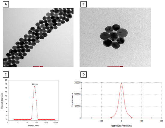 4.2. PEG–AgNP Characterization by Transmission Electron Microscopy and Surface Charge Analysis by Zeta Potential