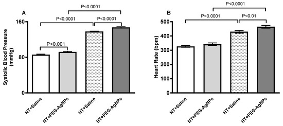 - Ramirez-Lee, M.A.; Aguirre-Banuelos, P.; Martinez-Cuevas, P.P.; Espinosa-Tanguma, R.; Chi-Ahumada, E.; Martinez-Castanon, G.A.; Gonzalez, C. Evaluation of cardiovascular responses to silver nanoparticles (AgNPs) in spontaneously hypertensive rats. Nanomedicine 2018, 14, 385–395. [Google Scholar] [CrossRef]