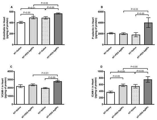 2.6. Endothelin-1, P-Selectin, Vascular Cell Adhesion Molecule-1 (VCAM-1), and Intercellular Adhesion Molecule-1 (ICAM-1) Concentrations in Heart