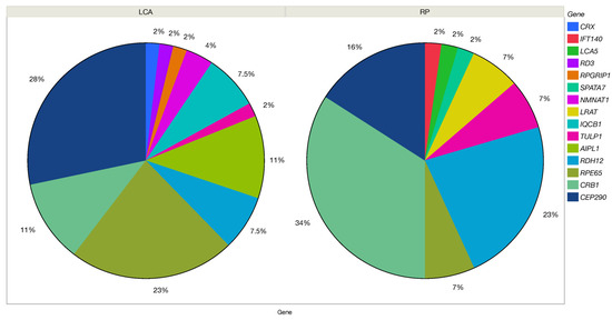 So far, at least 25 genes have been associated with LCA [12], and the genetic spectrum varies by geographic region and ethnic group. Mutations in CEP290 (Gene ID: 80184; OMIM 610142), for instance are known to be frequent in Northern Europe [19,20,21,22]. This is due to a common deep intronic founder mutation, namely c.2991+1655A>G, which results in missplicing and a premature termination codon [19]. Due to the lack of this variant in other populations, it is remarkably less prevalent in Southern Europe [23,24] and Asia [25,26,27,28]. A recent study showed that the frequency in Denmark is also low [29], indicating that even within a predominantly Caucasian population, prevalence rates may not be generalized. In rare diseases, such as LCA, because of the limited number of patients, genetic frequencies can hardly be estimated and can even differ from country to country. Therefore, comprehensive national studies are important to obtain valid prevalence data.