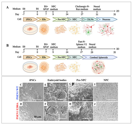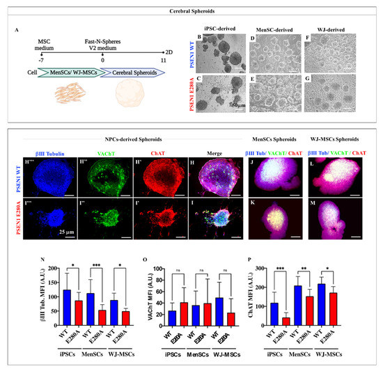 Mendivil-Perez, M.; Velez-Pardo, C.; Lopera, F.; Kosik, K.S.; Jimenez-Del-Rio, M. PSEN1 E280A Cholinergic-like Neurons and Cerebral Spheroids Derived from Mesenchymal Stromal Cells and from Induced Pluripotent Stem Cells Are Neuropathologically Equivalent. Int. J. Mol. Sci. 2023, 24, 8957. https://doi.org/10.3390/ijms24108957