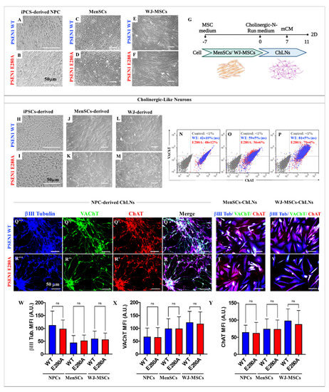 2.3. WT and PSEN 1 E280A MenSCs and WJ-MSCs Can Transdifferentiate into ChLNs and CSs Similarly to iPSC-Derived NPC