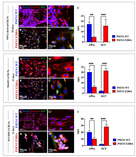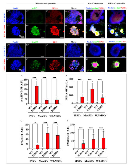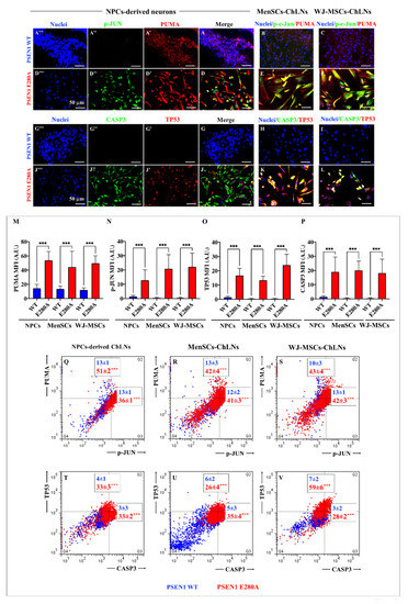 2.9. PSEN 1 1E280A CSs Derived from MenSCs and WJ-MSCs Show Markers of Apoptosis as Mutant NPC-Derived CSs