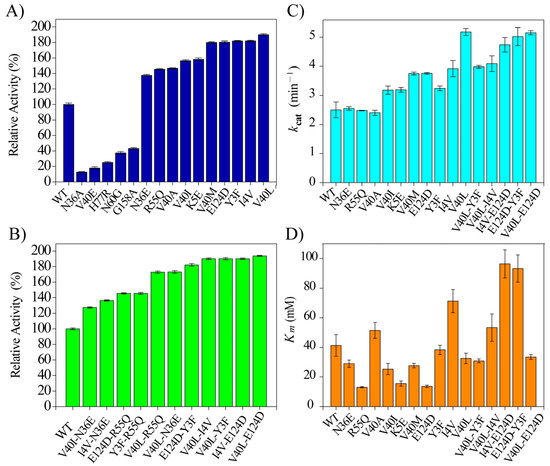 | V40L-R55Q | 60.20 ± 0.24 | E124D | 63.14 ± 0.10 |