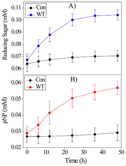 4.6. Hydrolysis of PNPC and CMC by the Purified Enzyme
