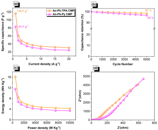 2.2. Electrochemical Performance of An-Ph-TPA CMP and An-Ph-Py CMP