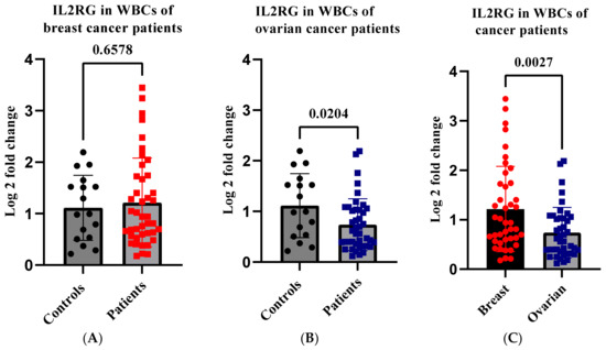 2.10. IL2RG Level Is Decreased in WBCs of CF-BRCA1-Methylation Carriers