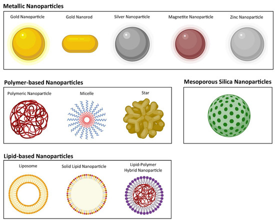 Over the last decade, diverse types of NPs have been proposed for the targeted therapy of MRSA, including metallic, polymer-based, mesoporous silica, and lipid-based NPs, as depicted in Figure 2. A detailed description of the NPs developed for the targeted treatment of MRSA is provided in the following sections.