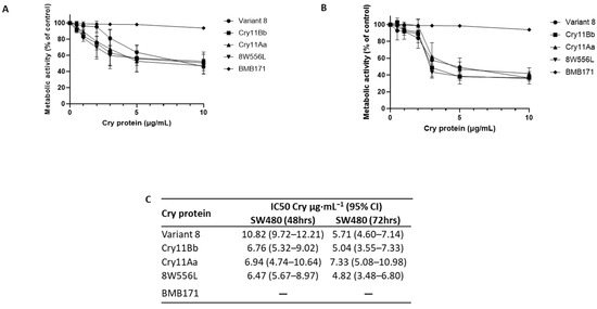 2.4. Cry Proteins Have an Antiproliferative Effect on the SW480 Cell Line
