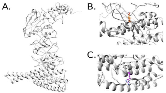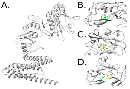 - Pettersen, E.F.; Goddard, T.D.; Huang, C.C.; Couch, G.S.; Greenblatt, D.M.; Meng, E.C.; Ferrin, T.E. UCSF Chimera—A visualization system for exploratory research and analysis. J. Comput. Chem. 2004, 25, 1605–1612. [Google Scholar] [CrossRef]