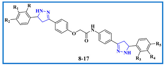 According to the antiproliferative results, the structure–activity relationship of our new bis-pyrazoline hybrids 8–17 (Figure 4) was as follows: