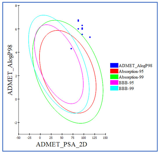 BIOVIA I Discovery Studio 2016 was used to conduct the ADMET studies. The chemical structures of all of the compounds were imported and ADMET descriptors were predicted using built-in models such as Lipinski’s rule of five, absorption, distribution, metabolism, excretion, and toxicity. The results were analyzed to determine the drug-likeness and safety of compounds.