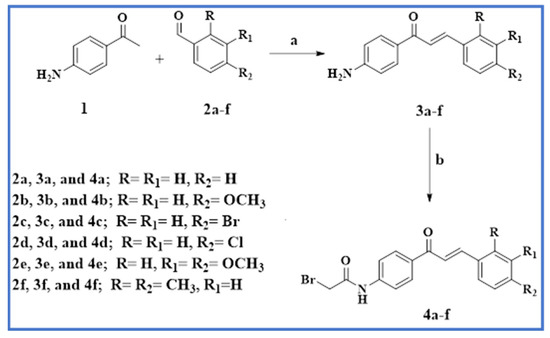 Synthesis of acetylated chalcone derivatives 4a–f.