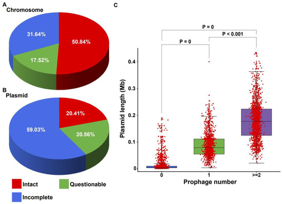 2.2. The Types of Prophages Integrated on Chromosomes and Plasmids Are Significantly Different