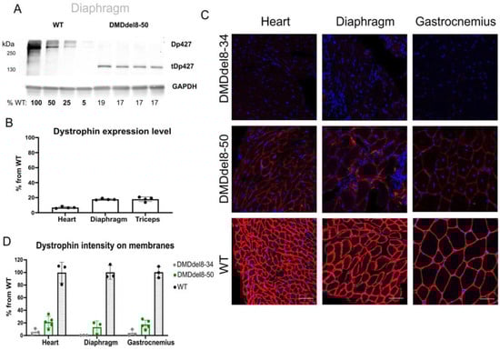 2.2. In BMDdel8-50 Muscles, Dystrophin Expression Is Below Normal Levels