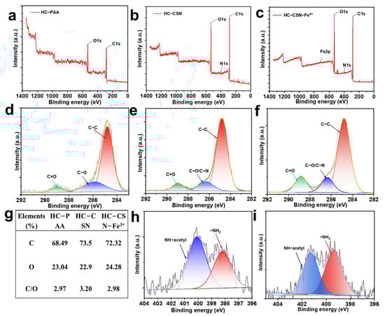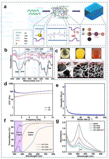 3.3. Characterization Analysis of HC-CSN-Fe3+ Hydrogels