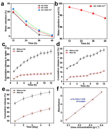 3.10. Analysis of Urea Release Performance of HC-CSN-Fe3+/SA Core-Shell Hydrogels