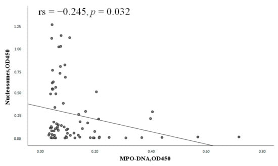 Nucleosome levels negatively correlated with the MPO-DNA complex levels in patients with SLE (Figure 9).