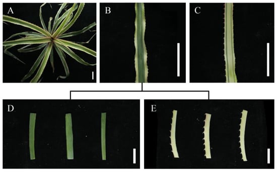 - Xue, Y.; Ma, J.; He, Y.; Yu, S.; Lin, Z.; Xiong, Y.; Rafique, F.; Jiang, F.; Sun, L.; Ma, M.; et al. Comparative transcriptomic and proteomic analyses of the green and white parts of chimeric leaves in Ananas comosus var. bracteatus. PeerJ 2019, 7, e7261. [Google Scholar] [CrossRef] [PubMed]
