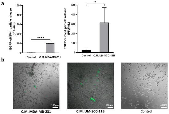 2.2. EGFP-oHSV-1 Infection Is Transmitted by Monocytes to MDA-MB-231 and UM-SCC-11B Cells in a Coculture Assay