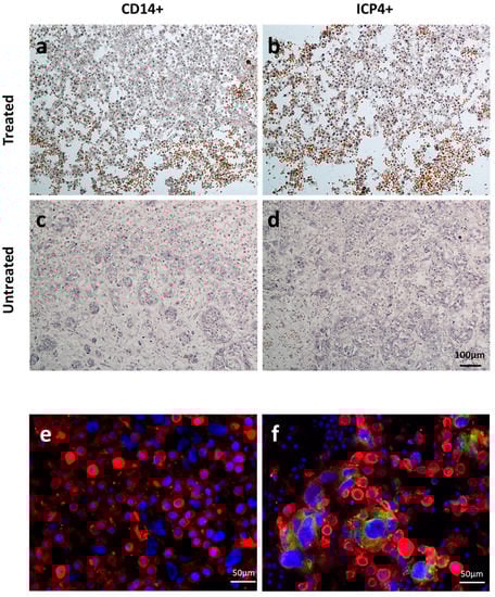 - Bruun, T.; Kristoffersen, A.K.; Rollag, H.; Degré, M. Interaction of herpes simplex virus with mononuclear phagocytes is dependent on the differentiation stage of the cells. APMIS 1998, 10, 305–314. [Google Scholar] [CrossRef]