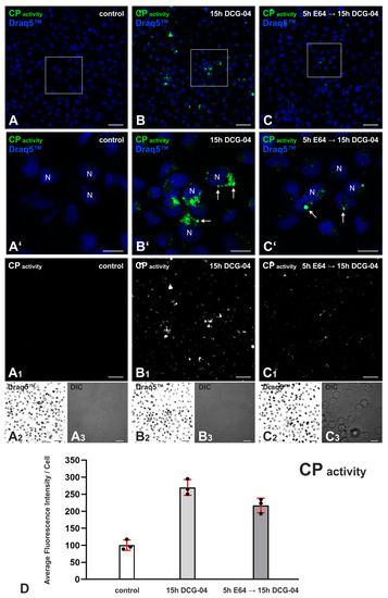 2.1. DCG-04 Labels Cysteine Peptidases and Verifies Successful Cysteine Peptidase Inhibition upon E64 Treatment of Nthy-ori 3-1 Cells