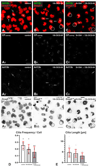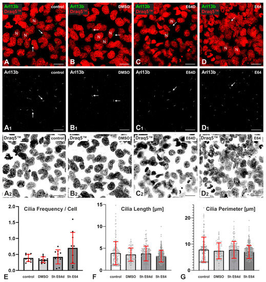 3.1. Inhibition of Cysteine Cathepsins Affects Cilia Frequency and Length