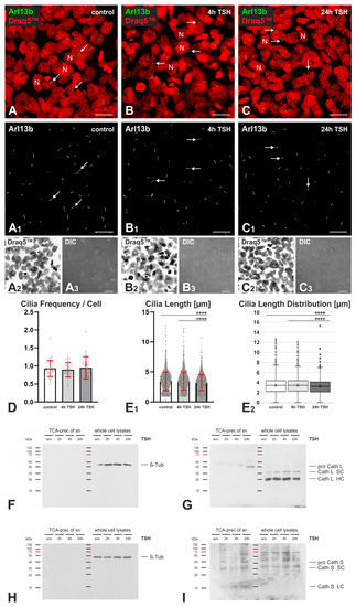 Chicago/Turabian StyleDoğru, Alara Gaye, Maren Rehders, and Klaudia Brix. 2023. "Investigations on Primary Cilia of Nthy-ori 3-1 Cells upon Cysteine Cathepsin Inhibition or Thyrotropin Stimulation" International Journal of Molecular Sciences 24, no. 11: 9292. https://doi.org/10.3390/ijms24119292