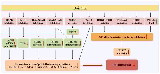 Chicago/Turabian StyleWen, Yongqiang, Yazhou Wang, Chenxu Zhao, Baoyu Zhao, and Jianguo Wang. 2023. "The Pharmacological Efficacy of Baicalin in Inflammatory Diseases" International Journal of Molecular Sciences 24, no. 11: 9317. https://doi.org/10.3390/ijms24119317