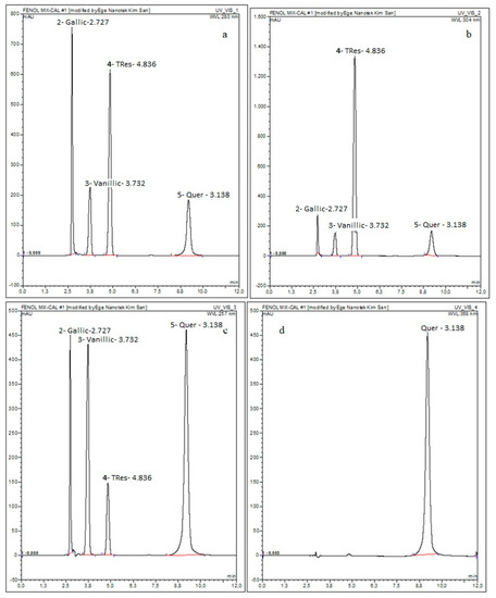 The obtained chromatograms are given in Figure 2 and the information on the content of the polyphenols is listed in Table 1.