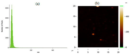 (a) Histogram graph; (b) AFM image of the prepared particles for the minimum average particle size.