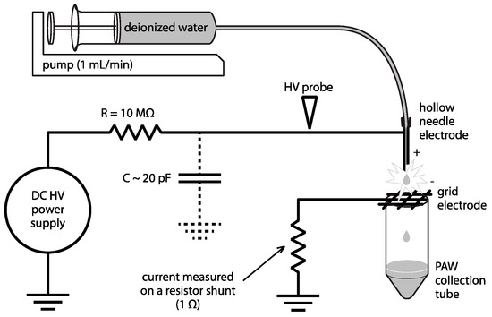 - Machala, Z.; Tarabová, B.; Hensel, K.; Špetlíková, E.; Šikurová, L.; Lukeš, P. Formation of ROS and RNS in Water Electro-S prayed through Transient Spark Discharge in Air and their Bactericidal Effects. Plasma Process. Polym. 2013, 10, 649–659. [Google Scholar] [CrossRef]